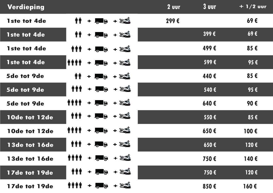 Verhuizen Zonder Ladderlift : excl.BTW (minstens 2u)